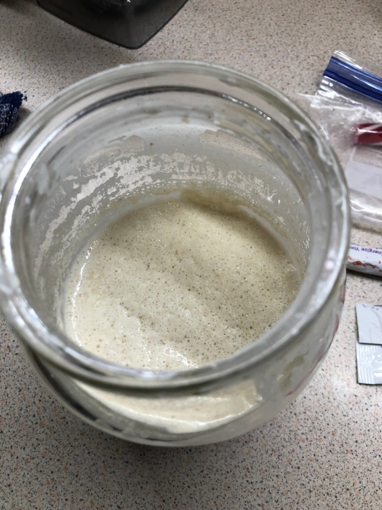 A satisfyingly bubbly starterDough for banana muffins.The finished product was super tasty, with a good crumb.