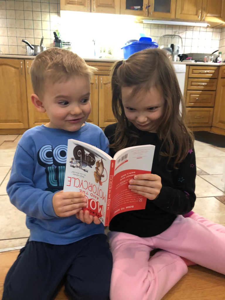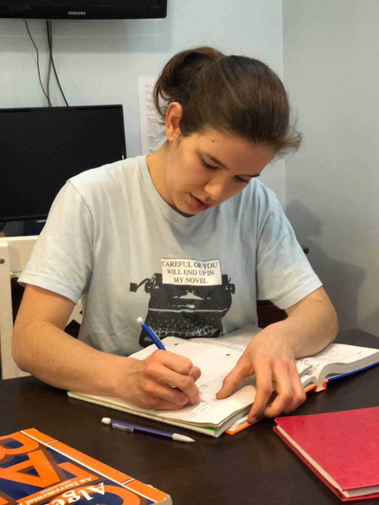 Tackling schoolwork with energy.Good ole’ Beverly Cleary! We took a picture to commemorate finishing the book.Being goofy