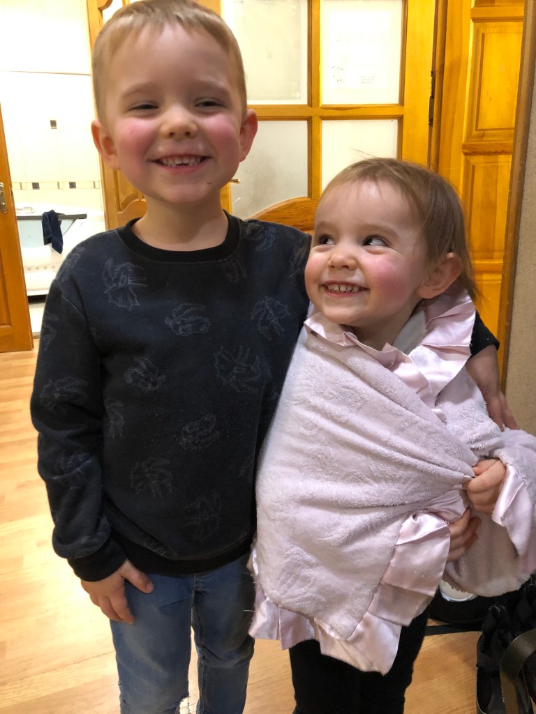Mia is fascinated with babies. After seeing a friend nurse her baby under a nursing cover, she wanted to have one too. David obligingly helped. 😅